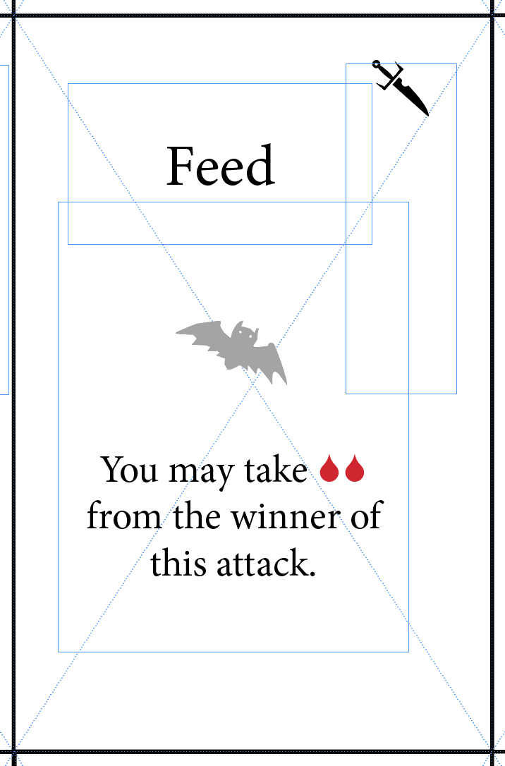 Now players are playing 2 cards (1 drafted + Feed), then 3 (2 drafted + Feed) then 4 (all 3 drafted + Feed). With blood limited to card placements, it no longer feels abstract and still remains balanced. This solves Problem #3.